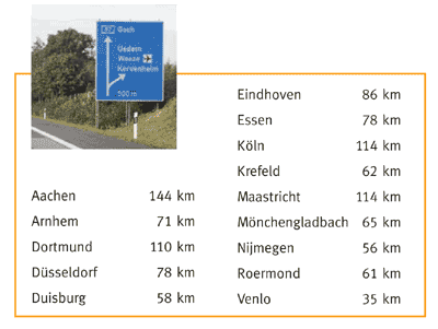 snelweg A67 via Venlo op de A77 richting Duitsland, dan op de A57 tot afrit